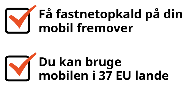 Husk dog, at du ikke længere vil kunne bruge din fastnettelefon, og at du fremover vil modtage alle opkald på din mobiltelefon. Du vil også skulle ringe fra din mobiltelefon fremadrettet. Det vil sige, at du ikke længere kan bruge dit fastnetnummer til at ringe fra.